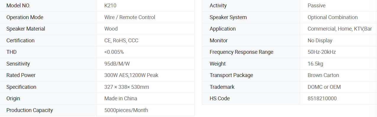 Domc K210 Professional Performance Single 10-Inch Speaker Powerful Low-Frequency Energy Excellent Dyn