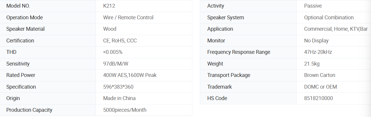 Domc K212 12 Inch Speaker,97dB Sensitivity